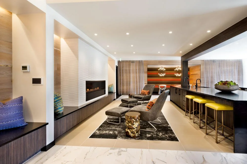 The original architecture of this high-rise located in the bustling Pearl District laid the groundwork for Studio Garrison to build upon for the interiors refresh. We focused on creating an engaging experience for the residents, from a daily happy hour in the lobby to adding BBQ & seating zones to the courtyard that formerly had a dog run and community garden that had not aged well.