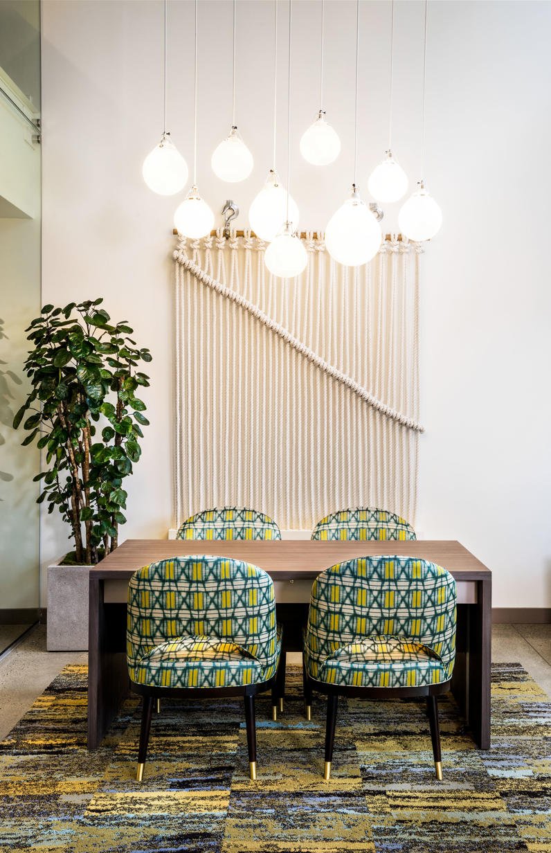 This project, named for the term used for the bend of a river, is located along Macadam Ave and the Willamette River in S Portland. With neutral interior finishes & simple, clean-lined architecture as the base for the design, Studio Garrison pulled from the jewel tones of nature including corals, turquoises, and deep emeralds to layer in color throughout the property.